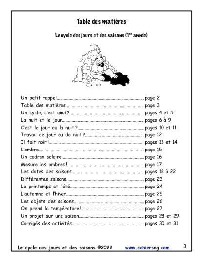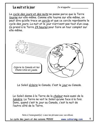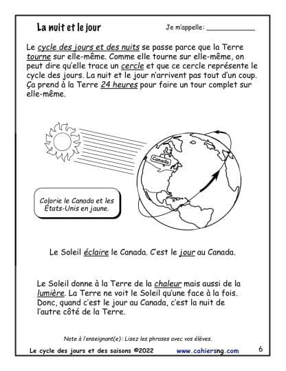 Voici 27 pages d’activités sur les cycles des jours et des saisons. On y aborde le rôle du Soleil et de la Terre, les saisons, les activités qu’on y pratique, la température, etc. Les corrigés sont inclus. Pour des élèves de 1re et de 2e années. Les pages de ce document ont le format régulier de 8,5 x 11.