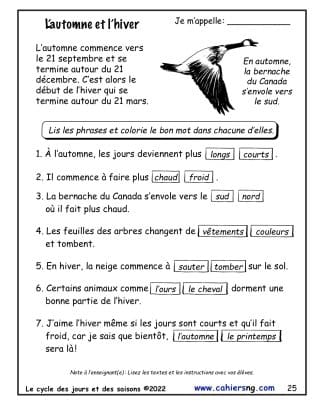 Le cycle des jours et des saisons (1re/2e années) – NOUVELLE SÉRIE ! – Tout nouveau, tout beau !