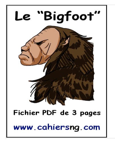 Bigfoot, créature légendaire des États-Unis et du Canada. On l’a vu, on l’a entendu, on l’a photographié et on l’a même filmé. Voici un fichier PDF de trois pages sur cet « animal ».