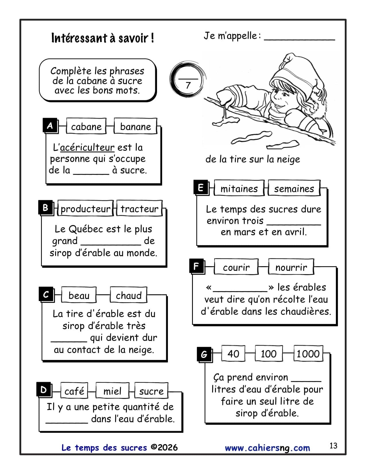 Cette activité vient du document Le temps des sucres (3e/4e années).