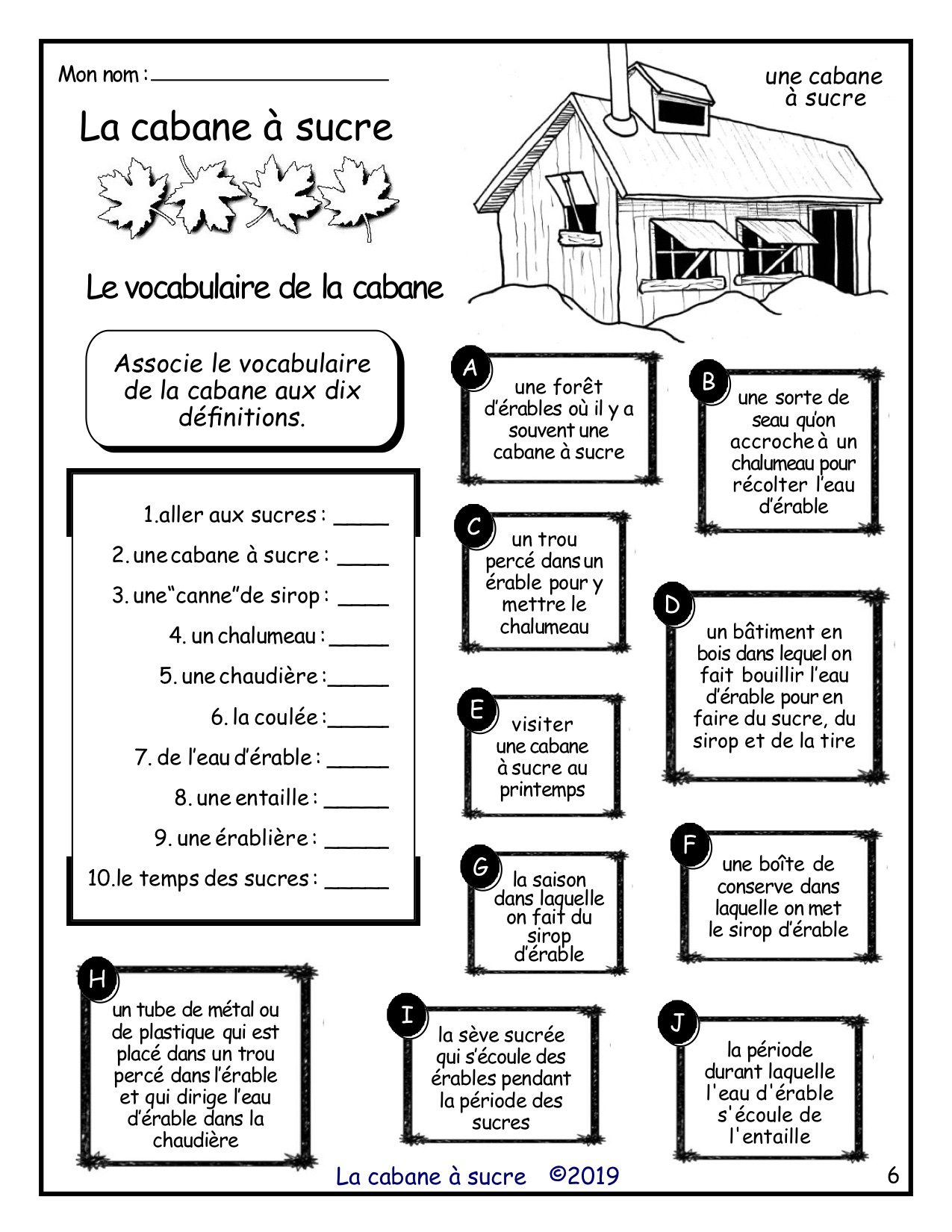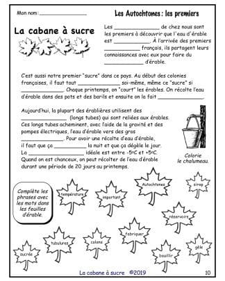 Cette activité vient du document La cabane à sucre (4e/5e années).