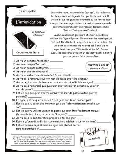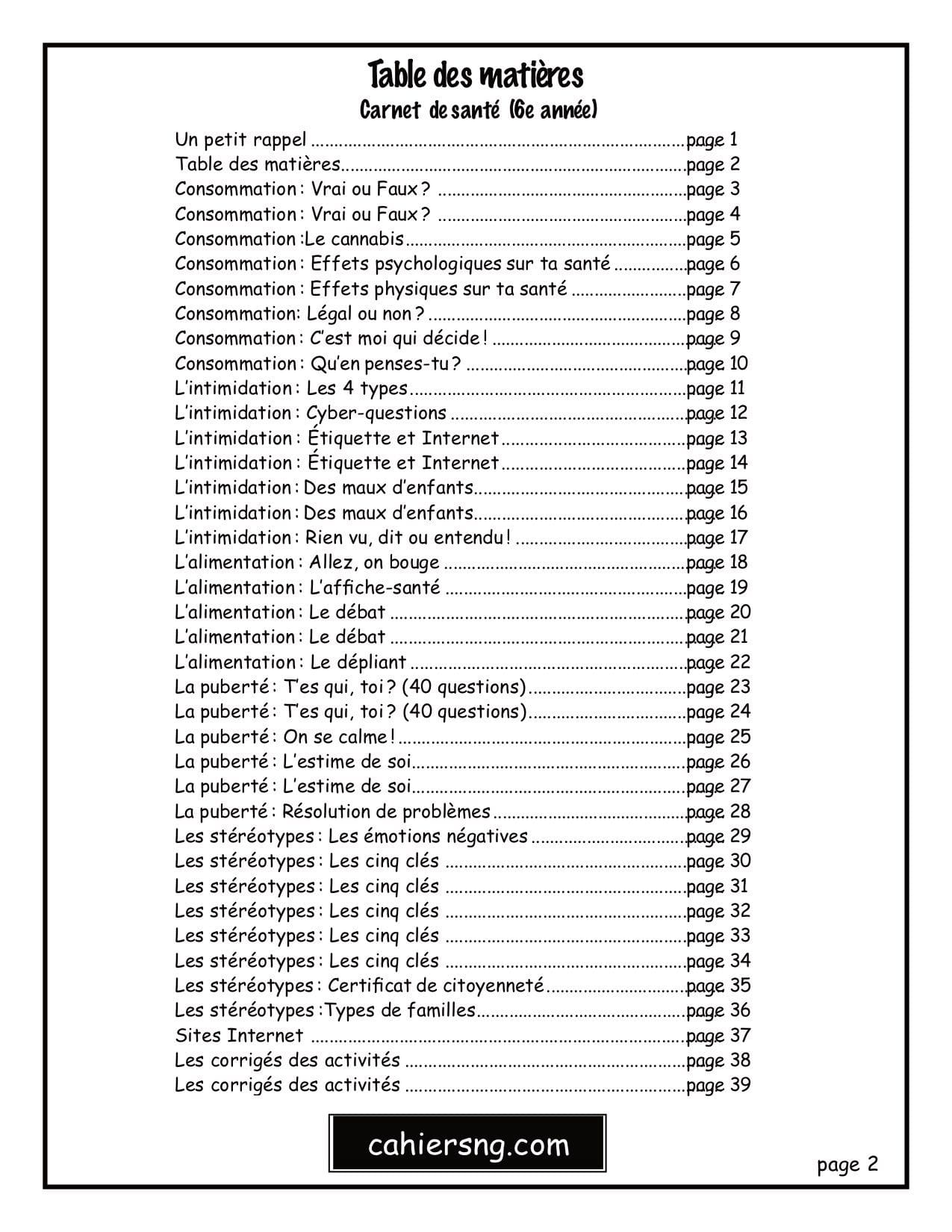 Voici 34 pages d’activités complémentaires sur la santé. Ces activités portent sur la relation entre une bonne alimentation et une vie active, sur les interactions sociales et les conflits, sur les effets de substances toxiques, sur l’intimidation, sur la puberté et sur les stéréotypes. Corrigés inclus.