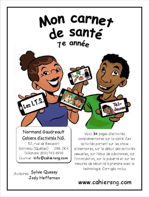 Voici 33 pages d’activités complémentaires sur la santé. Ces activités portent sur les choix alimentaires, sur le début des activités sexuelles, sur l’abus de substances, sur l’intimidation et sur les mesures de sécurité à prendre avec la technologie. Corrigés inclus.