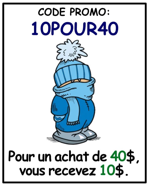 Sur une commande de 40$, vous recevez sur le champ une remise de 10$!
