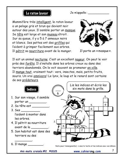 Cette activité vient du document Ani-mots croisés – Volume #2 – 3e/4e années.