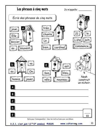 3, 2, 1, c’est juin ! – 1re/2e années – Les 5 phrases
