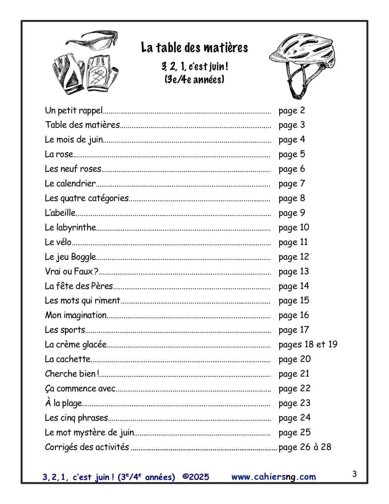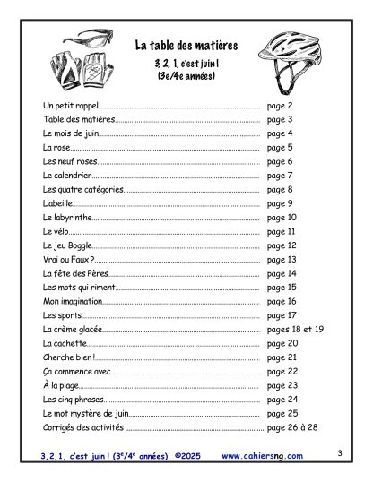 Un document identique écrit pour des 1re et 2e années est aussi disponible : 3, 2,1, c’est juin ! (1re/2e années).