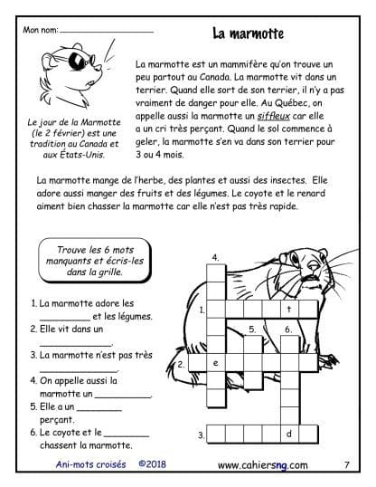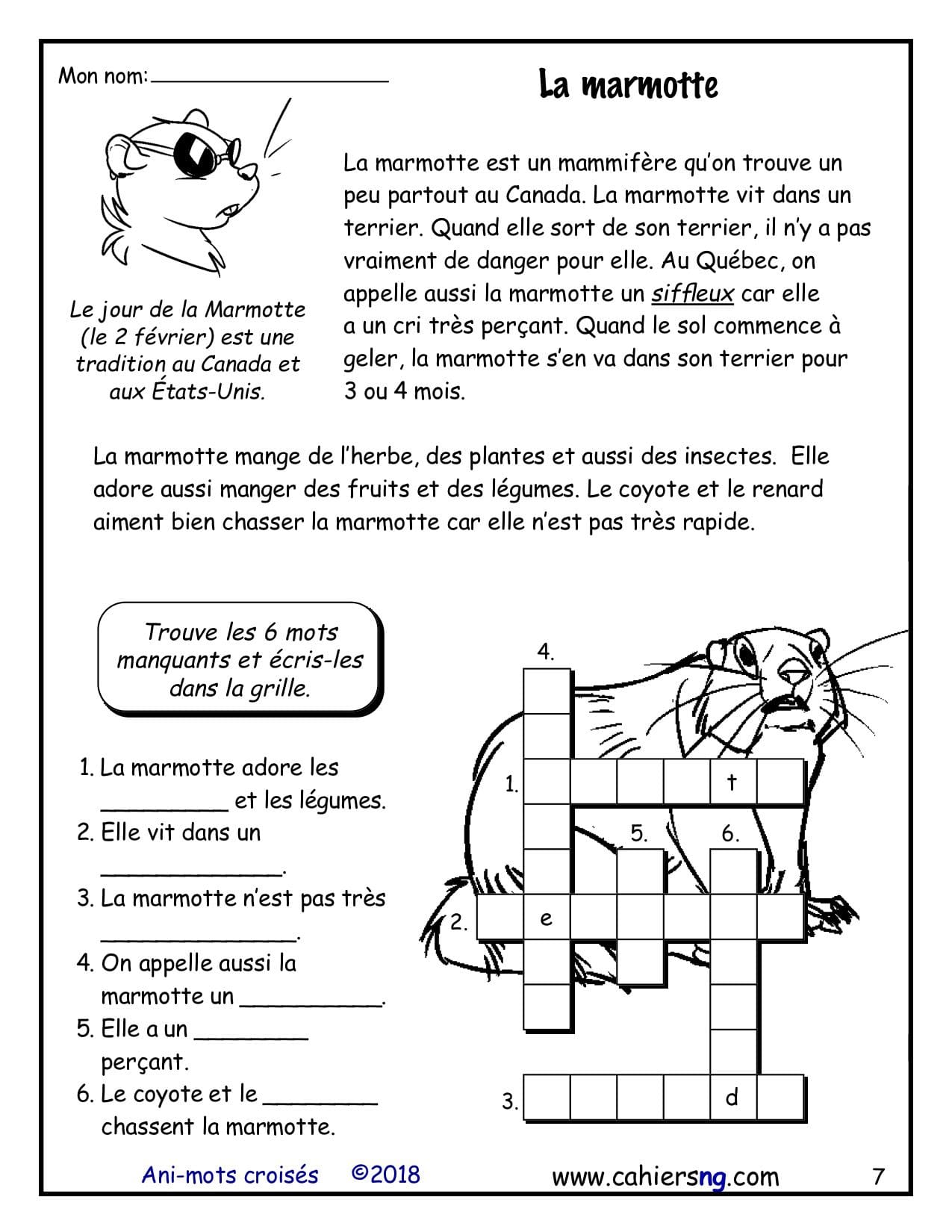 Cette activité vient du document Ani-mots croisés (2e et 3e années).