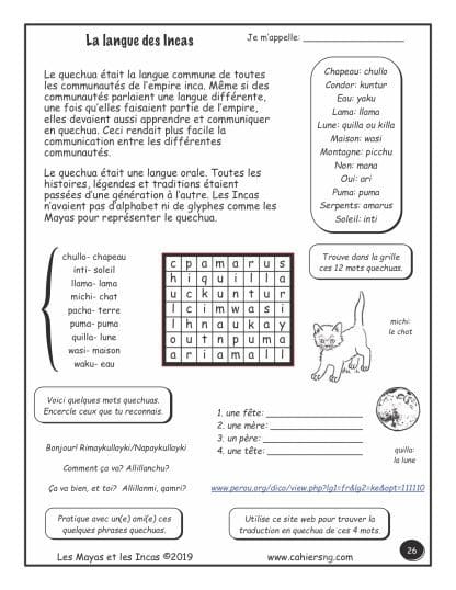 Les Mayas et les Incas (4e/5e) – La langue des Incas