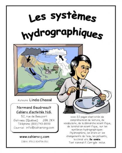 Voici 33 pages d’activités de compréhension de lecture, de vocabulaire, de travail avec la démarche et la notation scientifique sur les systèmes hydrographiques: l’hydrosphère, les états et les changements de l’eau, les polluants, le climat, etc. Pour des élèves de 8e année. Test sommatif. Corrigés inclus.