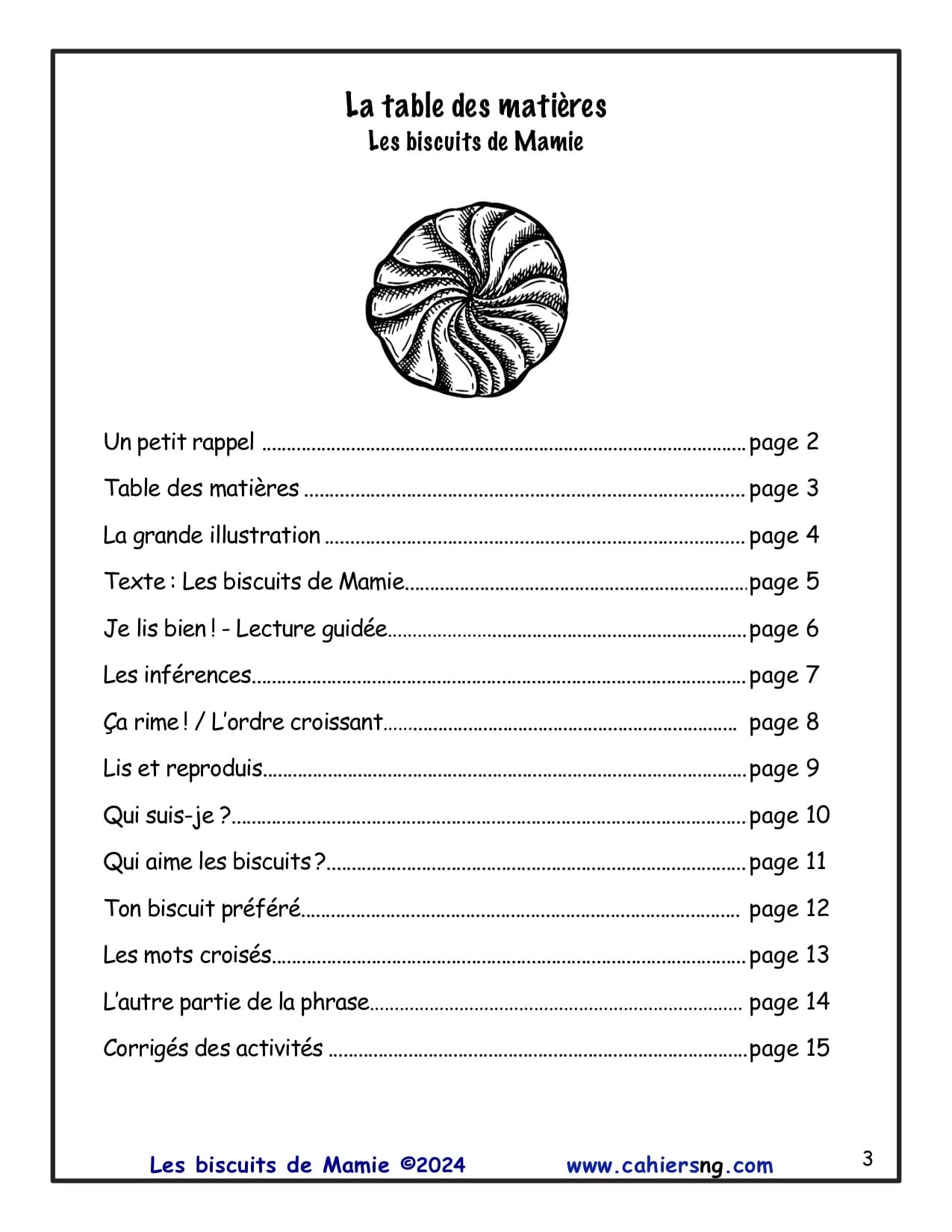 Laurie attend sa mamie qui va apporter des biscuits pour tout le monde. Voici 11 pages de lecture et d’activités de compréhension, de vocabulaire et d’inférences. Les corrigés sont inclus. Pour des élèves de 3e et de 4e années.