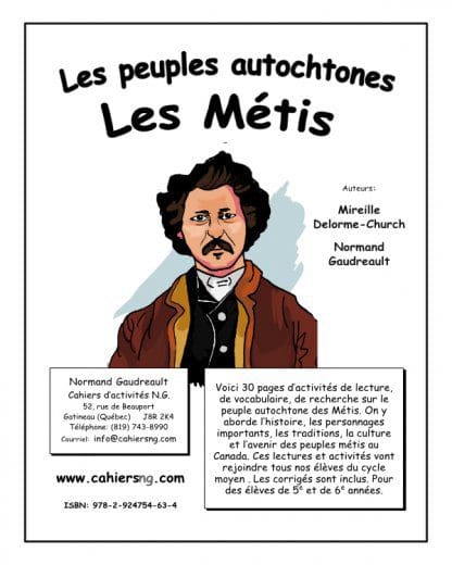 Voici 31 pages d’activités de lecture, de vocabulaire, de recherche sur le peuple autochtone des Métis. On y aborde l’histoire, les personnages importants, les traditions, la culture et l’avenir des peuples métis au Canada. Ces lectures et activités vont rejoindre tous nos élèves du cycle moyen. Les corrigés sont inclus. Pour des élèves de 5e et de 6e années.