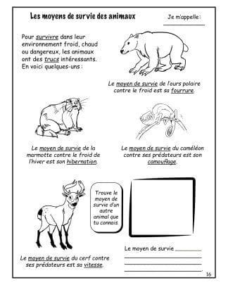 Les animaux – (2e) – Les moyens de survie