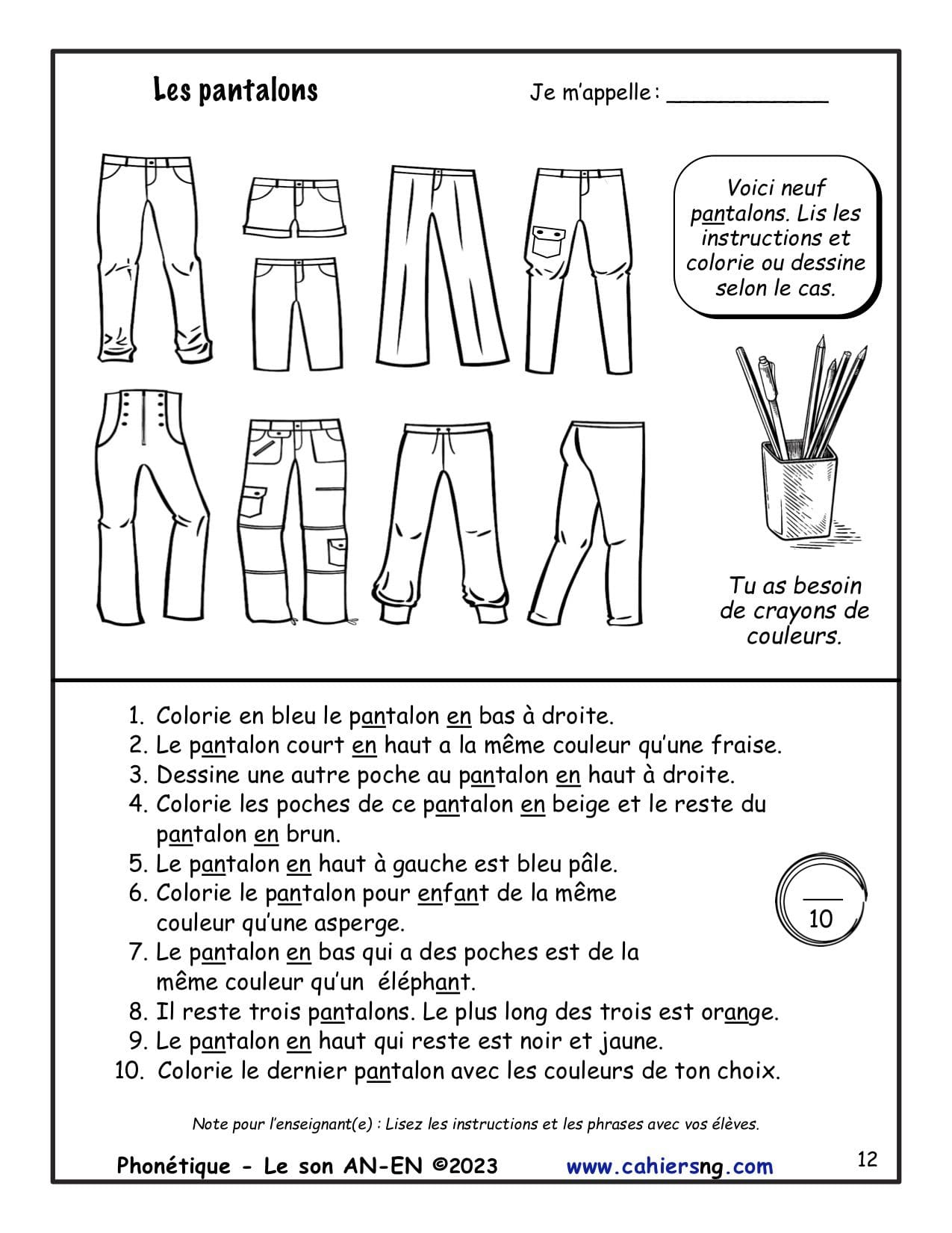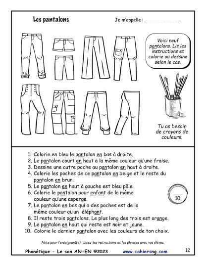 Cette activité vient du document Phonétique – Le son AN-EN – (2e/3e années)