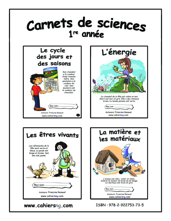 Voici quatre livrets d’activités complémentaires et langagières de sciences : L’énergie, Les systèmes vivants, La matière et les matériaux, Le cycle des saisons. Document reproductible pour des élèves de 1re année. Pour ces petits carnets de sciences, vous devez faire des photocopies recto-verso (ex: les pages 1 et 2 vont ensemble, les pages 3 et 4, les pages 5 et 6 et finalement les pages 7 et 8). Vous pliez ensuite les 4 feuilles pour former le petit livret. À la page 9, vous avez les corrigés des activités.