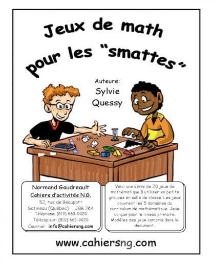 Voici une série de 20 jeux de mathématique à utiliser en petits groupes en salle de classe. Les jeux couvrent les 5 domaines du curriculum de mathématique: la numération, la géométrie, la mesure, la probabilité et la modélisation: Jeux conçus pour le niveau primaire: 1re, 2e et 3e années. Modèles des jeux compris dans le document. Auteure: Sylvie Quessy