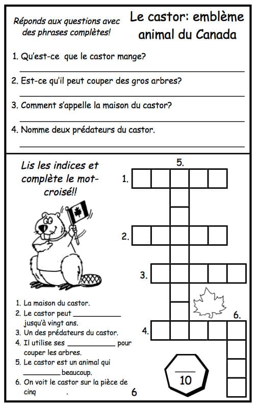 Petit livret thématique de 16 pages sur les animaux du Canada. Activités de vocabulaire, de lecture, de compréhension et de grammaire. En version PDF. Corrigés inclus. Pour ces livrets, vous devez faire des photocopies recto-verso (ex: les pages 1 et 2 vont ensemble, les pages 3 et 4, les pages 5 et 6 et finalement les pages 7 et 8). Vous pliez ensuite les 4 feuilles pour former le petit livret. À la page 9, vous avez les corrigés des activités.