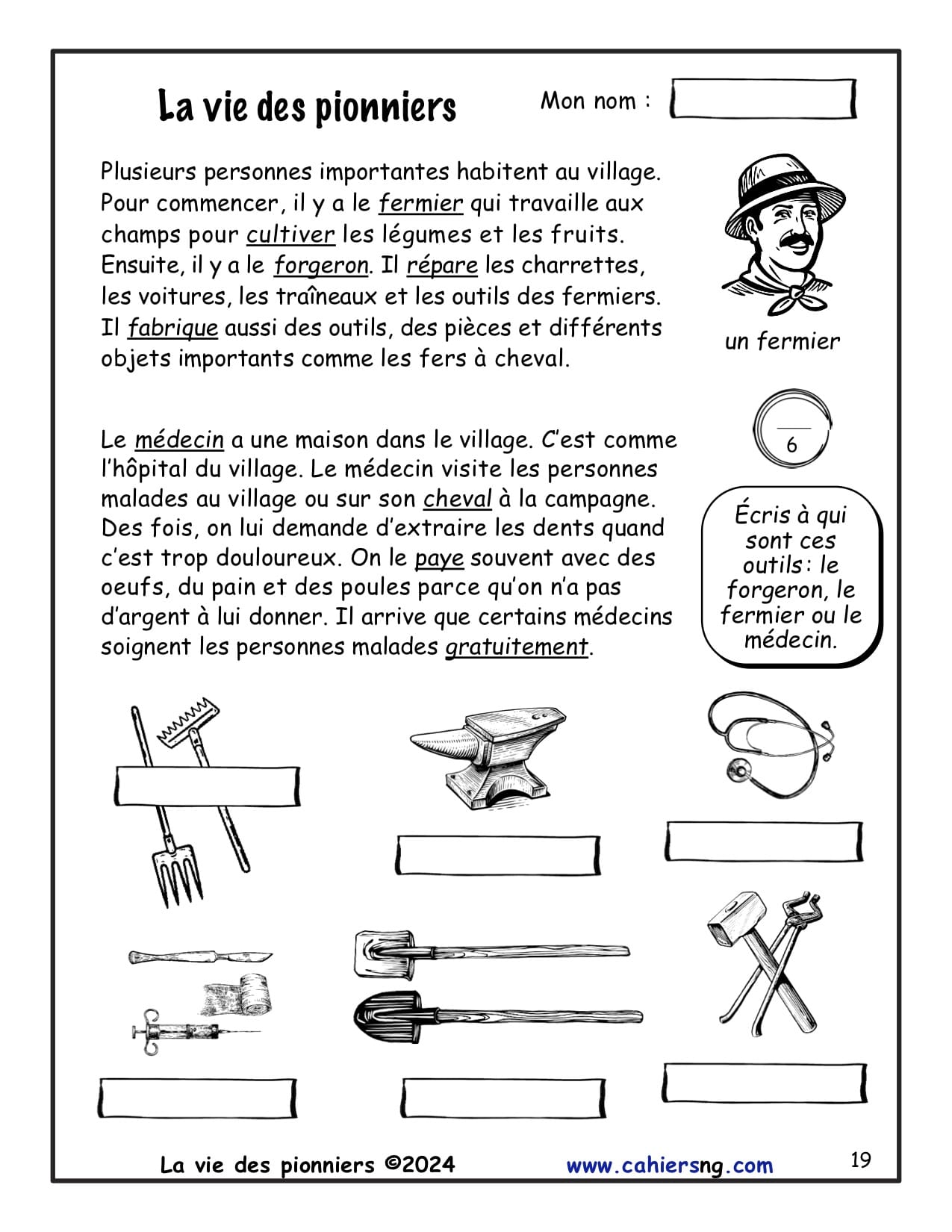 Cette activité vient du document La vie des pionniers – 3e/4e.