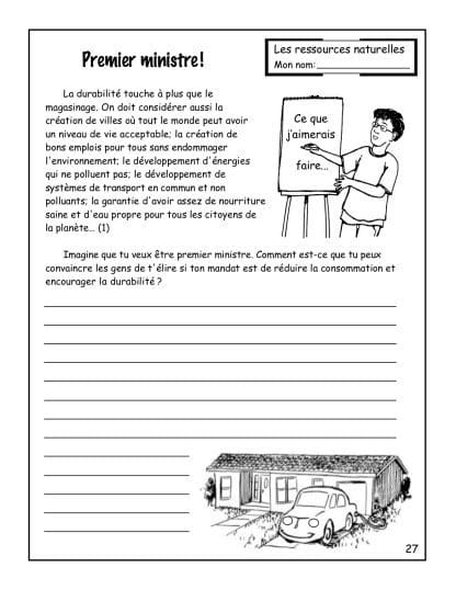 Voici trente pages d’activités sur l’utilisation et la durabilité des ressources naturelles ici et dans le monde. 7e/8e années. Corrigés inclus.