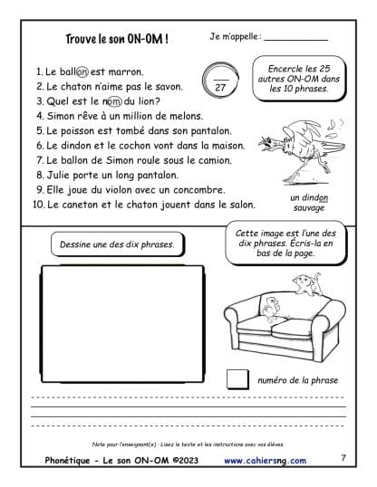 Cette activité vient du document Phonétique – Le son ON – OM.
